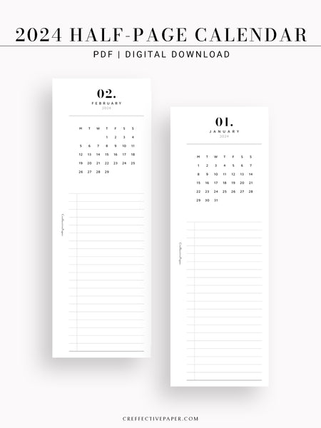 M118_2024 | 2025 Half Page Calendar, Monthly Task list
